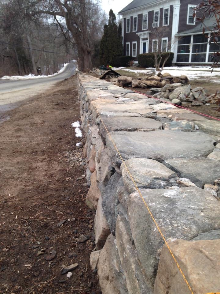 CT Fieldstone wall with curved bluestone cap.